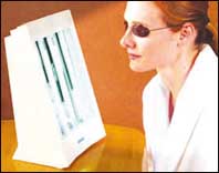 جهاز على شكل شاشة صغيرة للنساء اللاتي يرغبن في أن يميل لون بشرتهن للاسمرار يطلق هذا الجهاز أشعة UVA تشبه التي تطلقها أشعة الشمس الحقيقة يرفق مع الجهاز نظارة وقاية ........
