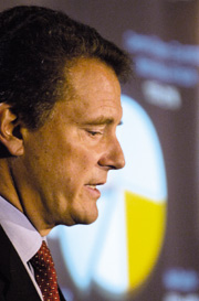 صورة توضح المدير التنفيذي لشركة اريكسون السيد كارل هنريك ابان إعلانه عن أرباح الشركة للربع الأول من سنة 2006م في مؤتمر صحفي أقيم في العاصمة ........