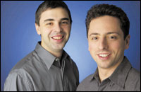 كاليفورنيا، الولايات المتحدةصورة لمؤسسي شركة جوجل المدير التقني سيرجي برين (يمين) ومدير الإنتاج لاري بيج (يسار). ويعود الفضل لهذين المؤسسين في تطوير محرك جوجل للبحث، منذ تأسيسها قبل عشر سنوات، بحيث أصبح الآن المركز الإلكتروني للمعرفة البشرية، باختزانه للبلايين من صفحات الويب والصور والكتب وأفلام الفيديو، وكانا حينذاك طالبين في جامعة ستانفورد.