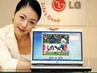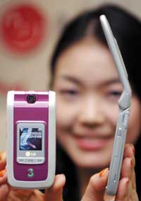 عارضة كورية تابعة لشركة إل جي (LG) العالمية في إنتاج الأجهزة الإلكترونية تستعرض جديد الشركة من الجيل الثالث للهواتف الخليوية وذلك خلال مؤتمر صحفي أقامته الشركة بهذه ........