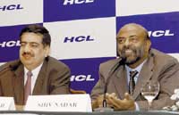 الرئيس التنفيذي لشركة HCL الهندية السيد تشيف نادار ونائبه فينيت نايير خلال المؤتمر الصحفي الذي أقيم بمناسبة الإعلان عن أرباح الشركة للربع الثالث من هذا العام. وقد صرح ........