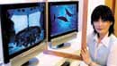 عارضة تابعة لشركة شارب اليابانية تعرض منتج الشركة الجديد من شاشات العرض الثنائية وكما هو واضح من الصورة فإن جهاز العرض يعرض صورتين مختلفتين ........