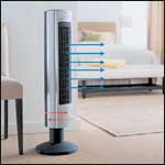 * يمكن لهذه المروحة البرجية الدوارة أن توفر لك هواءً عليلاً بهدوء وبثلاث سرعات.ويمكن التحكم بوظائفها كاملة عن طريق جهاز للتحكم عن بعد. وهذه المروحة تدفع الهواء بقوة مهما كان حجم الغرفة الموجودة فيها. كما يمكن لها أن تغير نظام حركتها جيئة وذهاباً لتلائم احتياجاتك. وبالنسبة لشفرات وغلاف المروحة فهي مصممة بطريقة هندسية مثالية لتعطيك أسرع تيار هوائي وأهدأ صوت أثناء التشغيل. أما بالنسبة لوحدة التحكم عن بعد فهي تمكنك من التحكم بكل وظائف المروحة. وأخيراً فهي لا تحتاج إلا الى خطوة واحدة لتجميعها دون حاجة الى أي أدوات تذكر لتبدأ بتهوية غرفتك.