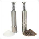 * يمكنك الآن أن تترك الطحن اليومي باستخدامك لهذه الطاحونة السريعة والتي تعمل بضغطة الإبهام لتطحن لك حبوب الفلفل والملح الخشن. وهذه الطاحونة تستخدم تقنية الكبس لتسهيل عملية الطحن بيد واحدة.