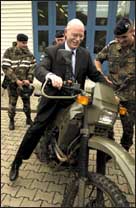 * وزير الدفاع الألماني بيتو سترول يقوم بتجربة دراجة نارية عسكرية خلال زيارته للواء فرنسي ألماني في بلدة موليهم الألمانية في إطار جولة للوزير الألماني لعدة مواقع عسكرية.........