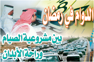 يشكل دوام رمضان هاجسا يؤرق الكثيرين، وتبدأ مخاوفه منذ حلول شهر شعبان لكونه يلقي بظلاله على غالبية أفراد الأسرة، وهو لا يزعج الموظفين والعاملين والطلاب وحدهم، بل يمثل قلقاً لقطاعات أخرى يهمها أن يبدأ اليوم العملي وينتهي بسلام، منها القطاعات الأمنية وإدارات المرور، وكذلك أولياء الطلاب وأسرهم، وقد ظلت هذه المشكلة تطرح نفسها في كل عام على بساط البحث وتنال من النقاش قدرا كبيرا، حتى ينقضي الشهر ........