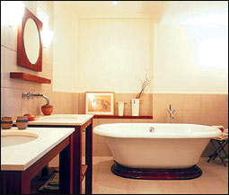 يولد الجمال داخل الحمام من نقاء الأشكال وغياب الحواجز بين الأجزاء أوفي الجزء الواحد. كذلك فإن الجمال يولده التناقض بين الأشياء ووجود المؤثرات المتناقضة في انعكاساتها وأشكالها وألوانها... فالتناقض يوجد بين المكان المظلم والمضاء وبين الأشكال الدائرية والمربعة في الديكور كذلك بين النماذج المختلفة، بين الياباني والفرنسي، الأوروبي والأسكندنافي، الشرقي والغربي... وفي هذا الحمام حيث اجتمع الكثير