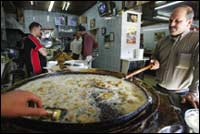 في أحد مطاعم مدينة الخليل يقلون الفلافل قبل الإفطار.