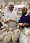 كويتي يشتري السمك من أحد الأسواق لإعداده للافطار.