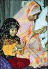 امرأة وابنتها في مدينة حيدر أباد الهندية أثناء الدعاء في صلاة التراويح.