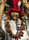 بائع متجول في القاهرة يعرض بضاعته من التمر لإغراء الصائمين للشراء.