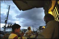 عائلة لبنانية من قرية صديقين تتناول طعام الإفطار وقت أذان المغرب في منزلهم الذي