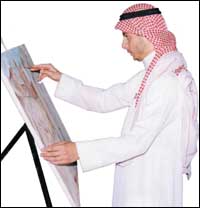 إنه الطالب ماهر محمد جمعة هبيانة (17سنة) الذي يدرس بثانوية القادسية ويهوى الفن التشكيلي ويملك موهبة واعدة في هذا المجال.