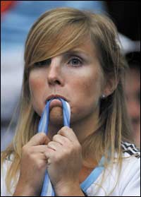 إحباط وحزن على وجه فتاة أرجنتينية بعد خروج منتخب بلادها من المونديال أمام ألمانيا