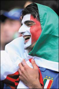 مشجع إيطالي ارتدى علم بلاده بعد الفوز الكبير على منتخب أوكرانيا بثلاثة أهداف نظيفة وصعوده للدور قبل النهائي