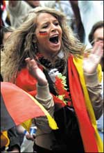 فتاة ألمانية تعبر عن سعادتها بتأهل منتخب بلادها للدور قبل النهائي بعد الفوز على الأرجنتين