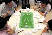* مطعم بشنغهاي يقدم الطعام لزبائنه في صينية على شكل كرة قدم بمناسبة منافسات كأس العالم.
