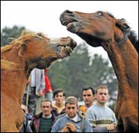 * جوادان يتعاركان خلال احتفال تقليدي شهدته بلدة سيديرا بشمال غرب اسبانيا.
