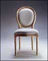 * كرسي من النموذج الكلاسيكي منجد بطريقة تحقق الراحة، مطلي من أطرافه باللون الذهبي، مكسو بغطاء صنع من خيوط النايلون والقطن.