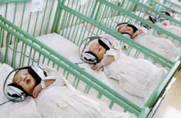 عدد من الأطفال السلوفاكيين حديثي الولادة ينعمون بنوم هادىء وهم يستمعون لموسيقى كلاسيكية من ألحان موزارت وفيفالدي في أحد المستشفيات الخاصة في شرق سلوفاكيا. وتم تجربة هذه الطريقة لاعتقاد القائمين عليها أنها تساعد الأطفال على التكيف مع الحياة بعد ولادتهم. (أ.ف.ب)........