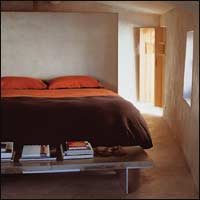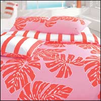 * سرير نوم يكتسي بمفارش ملونة بالألوان الحية المستمدة من الطبيعة.