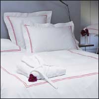 * نوع خاص من المفارش المصنوعة من القطن، تغطي اللون الأبيض مع لمسات من إطار للون الأحمر.