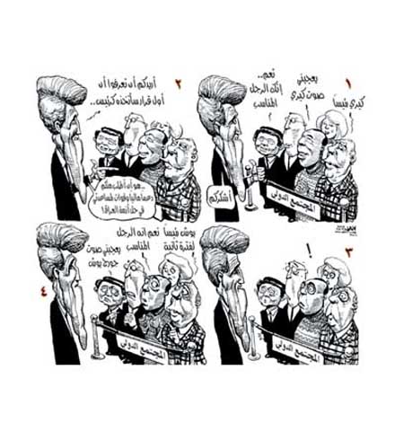 يفعل له شيئا إنها قمة المهزلة والفضيحة، ثم يأتي الدور بعد هذا على العراق وما نشاهده يحدث لأهلها وشعبها لا يمكن أن يتصوره إنسان عاقل فأين العالم المتحضر وأين الشعوب المتمدنة فما يحدث حالياً بصدق شديد لم أشاهد مثيلاً له في العصر الحديث وأصبحنا لا نعرف على من سيكون الدور من العرب والمسلمين؟!