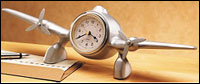 * ستكون هذه الساعة - الطائرة إضافة جميلة وأنيقة الى مكتبك تكسر حاجز الجدية المفرطة على سطح المكتب. فهي مثبتة إلى طائرة ذات مروحتين يمكن تدويرها فعلاً، كما أنها ذات وجه يسهل قراءة أرقامه ويمكن أن يجعلك تطلع على الساعة والدقيقة والثانية بسهولة.