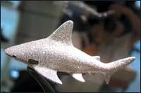 نموذج لسمكة قرش مرصعة بالألماس تم عرضها في أحد مراكز التسوق بمدينة «شيجي زاهونج» بشمال الصين. ويبلغ سعر هذه السمكة حوالي 2،2 مليون دولار. (رويترز)........