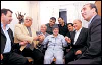 الزعيم الفلسطيني ياسر عرفات الذي احتل صدر الصحف الدولية طوال الأربعين عاما الماضية عاد إلى مدينته المحاصرة ميتا.