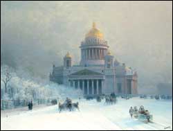 لوحة للرسام الروسي إيفان كونستانتينوفيتش بعنوان «سانت إسحاق في يوم جليدي» عرضها للبيع في صالة كريستي للمزادات بلندن.