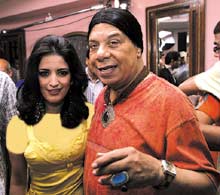 الممثل الكوميدي المصري وحيد سيف والممثلة المغربية سناء مزيان خلال أول يوم تصوير لفيلم (أشرف حرامي). ويشاركهما في الفيلم كل من شيرين رضا وتامر عبد المنعم وشعبان عبد الرحيم. (رويترز)........