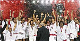 حقق ميلان الإيطالي بطولة أبطال الدوري الأوروبي بعد فوزه بركلات الترجيح على اليوفنتوس وكان اللقاء قد انتهى بالتعادل السلبي طوال فترات المباراة إلى ان احتكم الفريقان للعب ركلات الترجيح والتي أبدع فيها حارس ميلان البرازيلي الدولي نيلسون ديدا حيث تمكن من صد ثلاث ركلات ترجيحية توجت فريقه باللقب السادس في تاريخه، وعلى صعيد آخر حقق ميلان بطولة كأس ايطاليا بعد فوزه على روما ذهابا 4 1 وتعادله ايابا ........