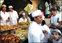 المغاربة يشترون الحلويات والمأكولات الرمضانية لتناولها بعد طعام الإفطار
