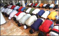 فليبينيون يؤدون الصلاة في أحد مساجد العاصمة مانيلا خلال شهر رمضان المبارك