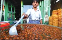 بائع أفغاني يقوم بقلي أطعمة رمضانية لزبائنه