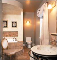 استفاد هذا الحمام من المساحات الواسعة في المنزل فجرى تزويده بأبواب وخصص للنشاطات بداخله ........