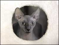 قطة من فصيلة (سفنكس) خلال مشاركتها في مسابقة لجمال القطط جرت في مدينة بوخارست برومانيا. وشارك في المسابقة قطط من بلغاريا وصربيا