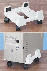 * زودت منصة الكمبيوتر البرجية هذه بعجلات لتسهيل النقل خاصة أن من الصعب نقل الكمبيوتر المثبت على الأرضية أو البساط أو الخشب عند الحاجة إلى تنظيف ما تحته أو تغيير مكانه.