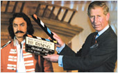 الأمير تشارلز ولي عهد بريطانيا يقف بجانب الممثل الهندي «عامير خان» خلال تصوير فيلم هندي بريطاني مشترك بعنوان «الشروق» وذلك بأحد استديوهات بومباي خلال رحلة للهند قام بها الأمير البريطاني لمدة تسعة أيام. (رويترز)........