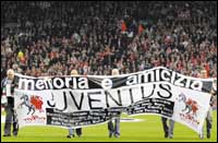 شهد ملعب آنفيلد الذي أقيمت عليه مواجهة الذهاب بين ليفربول الإنجليزي وجوفنتوس الإيطالي أحداثا ساخنة ومؤثرة سيطرت عليها مشاعر الحزن والأسى على ضحايا ملعب هايسيل بإنجلترا عام 1985م ولم يتقابل الفريقان منذ ذلك التاريخ وحتى مباراتهما هذه التي انتصر فيها ليفربول بهدفين مقابل هدف واحد، وقبيل ابتداء المباراة قدم جمهور ليفربول الإنجليزي شعارا امتد بعرض المدرجات وكتب فيه كلمة ........