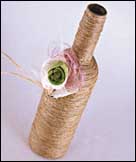 في هذا العمل اليدوي، نقوم بأعداد مزهرية مميزة بشكلها وتصميمها من قارورة زجاجية بعد أن استهلكت محتوياتها، بمساعدة خيوط القنب المصنوع من القطن أو من نسيج الكتان، ولاصق من وجهين، ومشرط ومقص وبعض الزهور التقليدية التي تستخدم في الديكور.