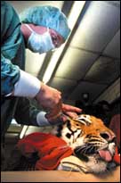 لنمر سيبيري يعاني من ضعف في النظر. «إ.ب.أ»........