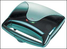 * نموذج من المنتجات المستخدمة في تسخين الطعام الخفيف كالسندويتش وغيرها، أنيق بمظهره الخارجي، خفيف الوزن؛ حيث يمكن حمله كحقيبة صغيرة وكذلك وضعه بشكل عامودي أو أفقي، مطلي بطلاء مقاوم للأكسدة وللالتصاق؛ لذا فهو جهاز سهل التنظيف.