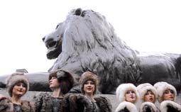 بعض أعضاء فرقة شوفاش الروسية قبل أداء وصلتهن الفنية على المسرح أثناء فعاليات المهرجان الروسي الشتوي في ميدان الطرف الأغر بلندن.