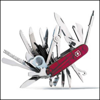 كثير من محبي السكاكين السويسرية يعشقونها بسبب أنها عملية ومفيدة وتحوي العديد من الخيارات السريعة والسهلة التي قد توفر على صاحبها عشرات الخطوات لحلها. ولكن هذه السكين المميزة يعتبرها الكثيرون أم هذه السلسلة الشهيرة من السكاكين السويسرية؛ فهي تحوي خيارات كثيرة كما هو موضح في الصورة، وهي تفوق الكثير من النسخ المشابهة لها؛