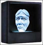 * قطعة رائعة تعتمد على أبسط قواعد خداع البصر ، قد تكون من أجمل الأشياء التي قد تضيفها لمنزلك أو لمكتبك، فهي لوجه معلق في الهواء كأنه شبح يظل محدقا بك ويلتفت ليتابع تحركاتك في غرفتك أو مكتبك، بالفعل هي إضافة أنيقة وعجيبة لن تخيفك إذا تذكرت أنها مجرد لعبة في خداع النظر.