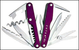 هذه القطعة الصغيرة التي تصنعها شركة « ليثرمان» سهلة الاستعمال وستجد بها: منشارا صغيرا ومقصا ومفكات براغي بأحجام مختلفة وفتاحة معلبات و مقص للأسلاك المعدنية وسكين، تتوفر هذه القطعة بألوان مختلفة منها الرمادي والأحمر ووزنها لا يتجاوز190غراما فقط.
