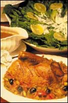 يغسل الدجاج و تقطع كل واحدة من 6 إلى 8 قطع.