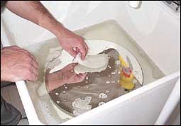 فالطريقة المثلى والشائعة هي الغسيل عن طريق الشطف بالماء والصابون السائل مضافا إليه قليل من مادة الكلوركس، إلا أن ........